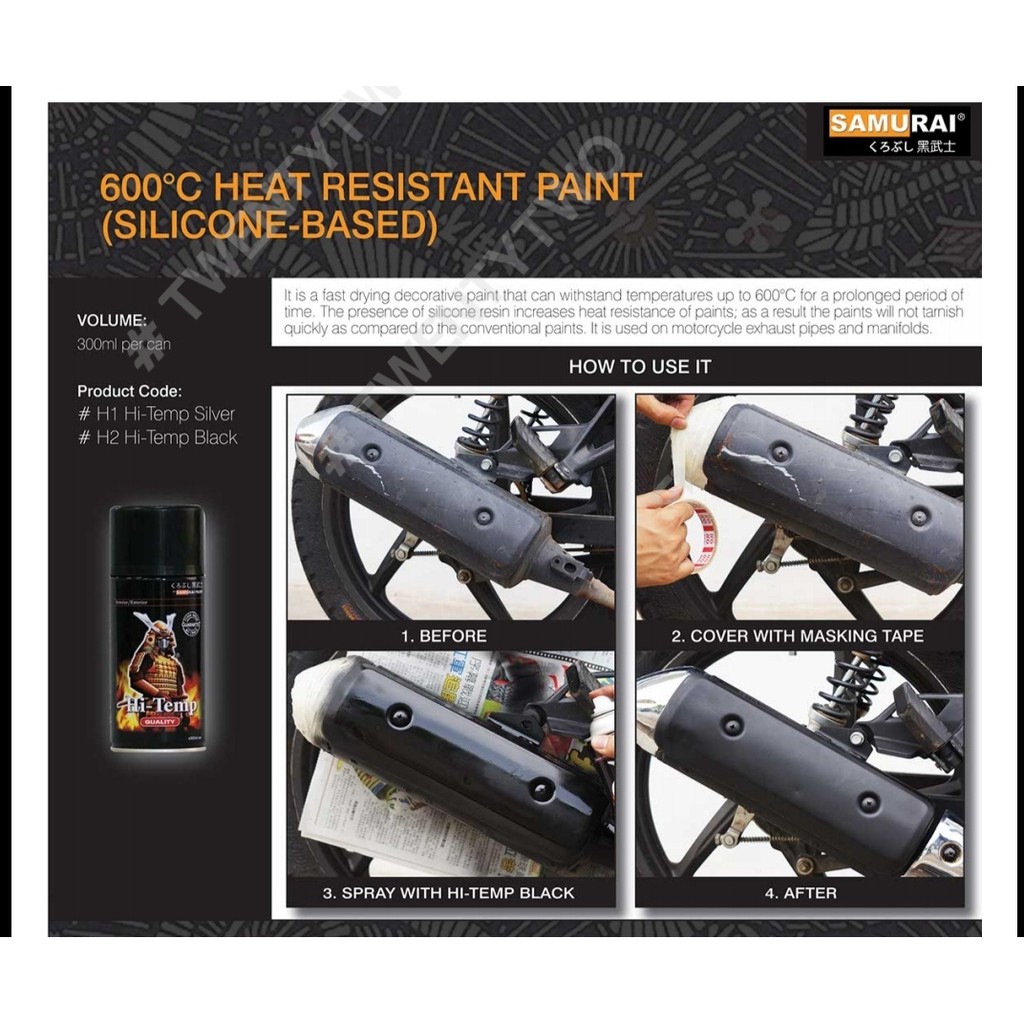 Samurai Spray Paint Hi Temp 300ml Black Or Silverp Shopee